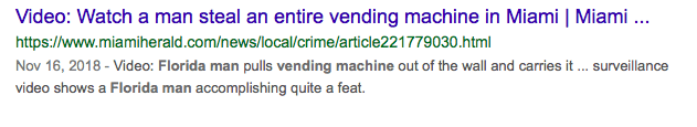 Here’s what you need to do. Just type “Florida Man” into Google, followed by your birthday. The best results don’t include the year, so that’s not important. Then, the first result that pops up (cancelling out any stories regarding the challenge itself) is your result.