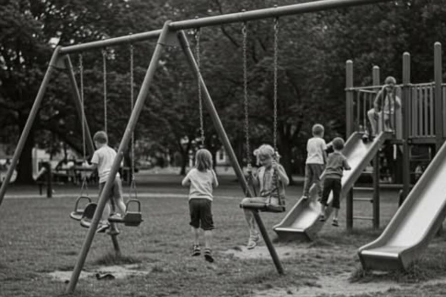 But unseen by the boys, a dark figure lingered at the edge of the park — watching, waiting. In that quiet moment, innocence met danger.