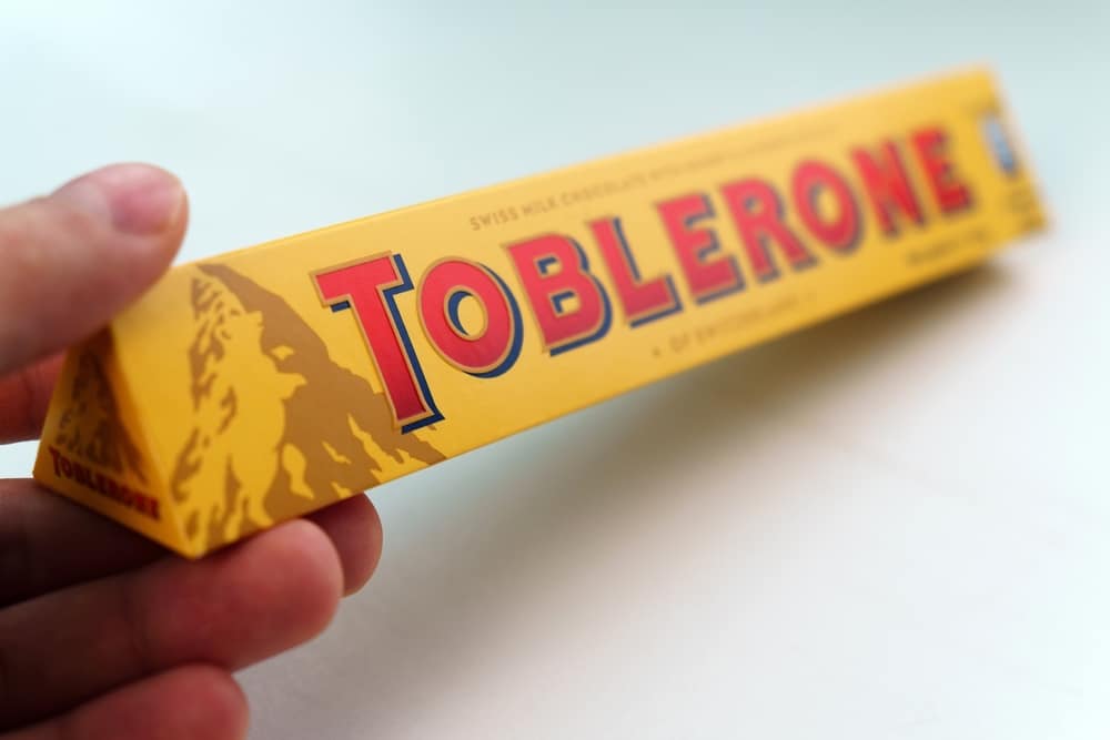 The Toblerone mountain logo reflects the candy’s Swiss origins. Embedded in its silhouette is the outline of a bear, a nod to Bern, the city associated with the animal and the birthplace of the company. The chocolate’s triangular shape echoes the peaks that inspired it.