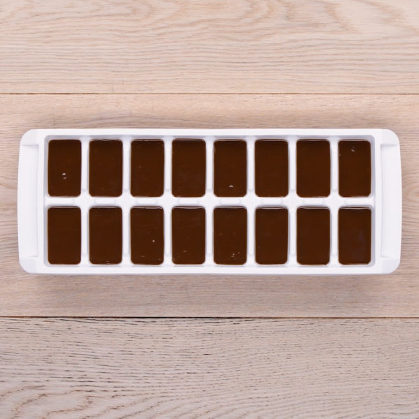 Once your hour is up, remove the ice tray full of gravy from the freezer. Flip the tray over and this is what your “gravy cubes” should look like.